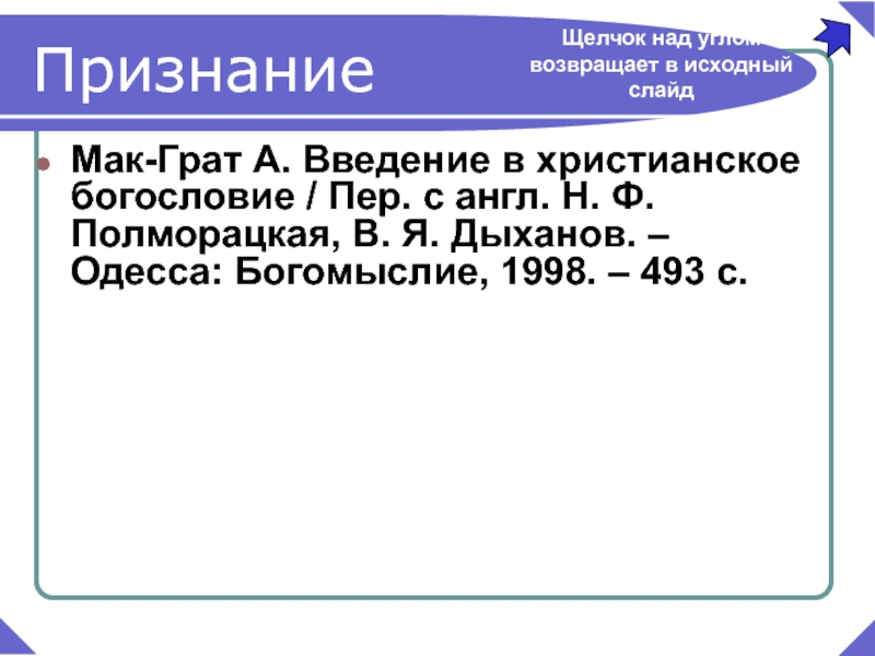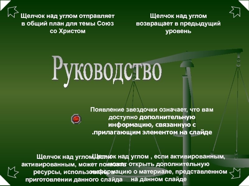 Щелчок над углом , если активированным, может открыть дополнительную информацию о материале, представленном на данном слайде