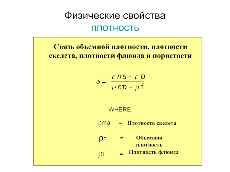 Плотность скелета определяется как объемная плотность породы при нулевой пористости или как модальное значение закона распределения экспериментальных данных