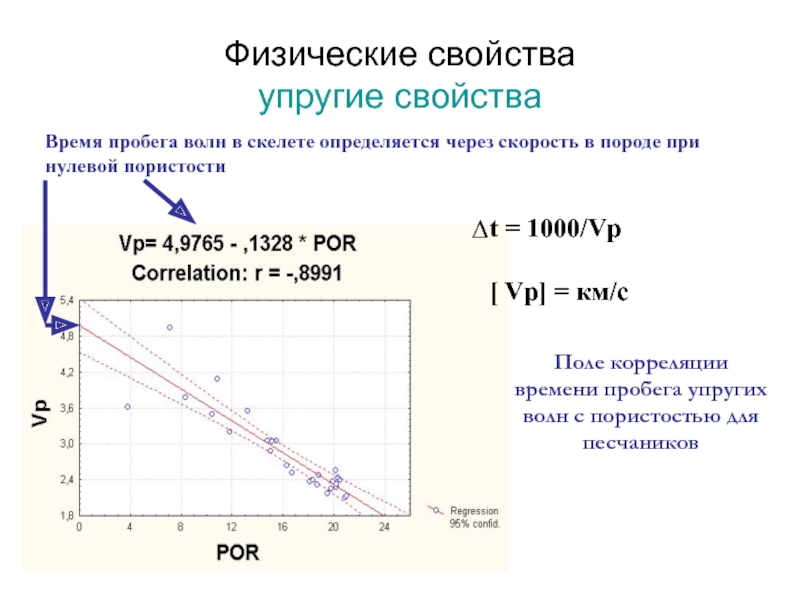 Время пробега волн в скелете определяется через скорость в породе при нулевой пористости
