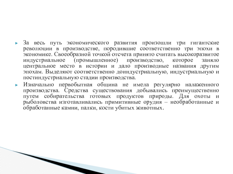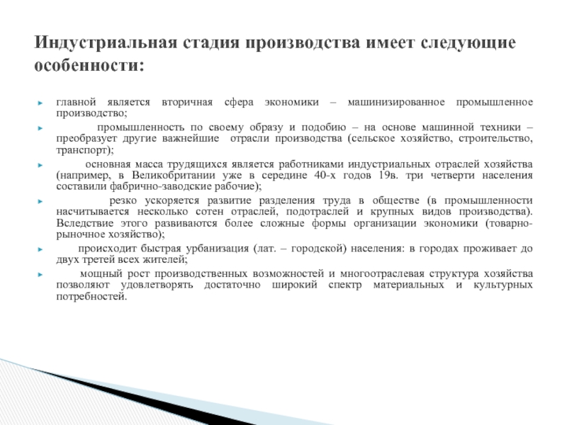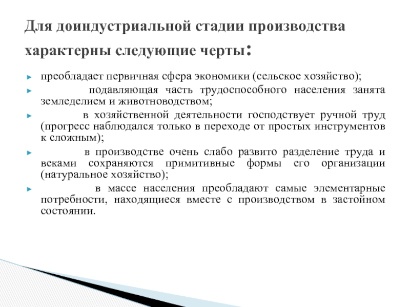 Для доиндустриальной стадии производства характерны следующие черты: