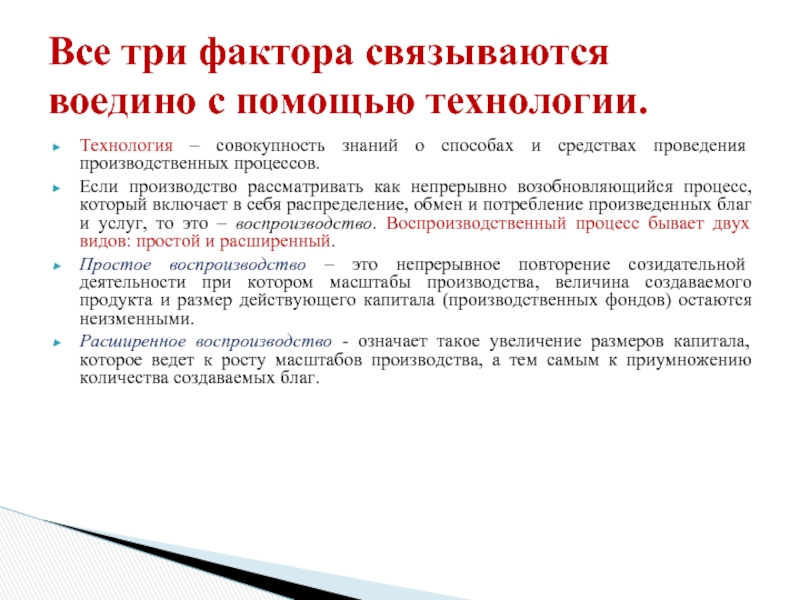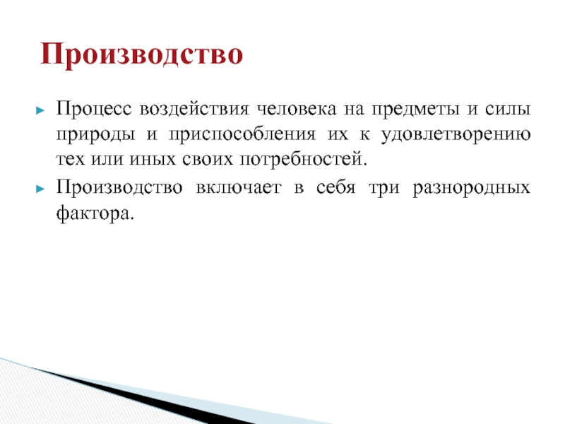 Производство включает в себя три разнородных фактора.