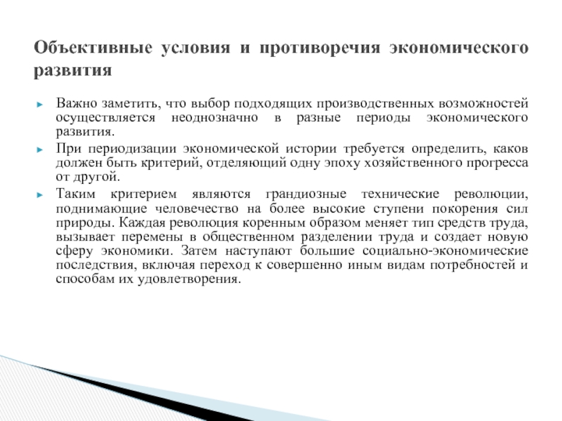 Объективные условия и противоречия экономического развития
