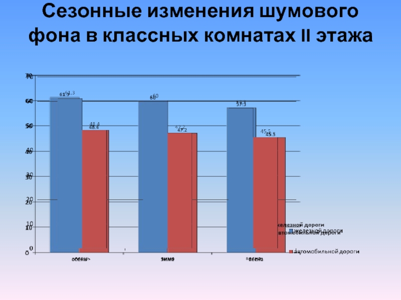 Слайд 17Сезонные изменения шумового фона в классных комнатах II этажа
