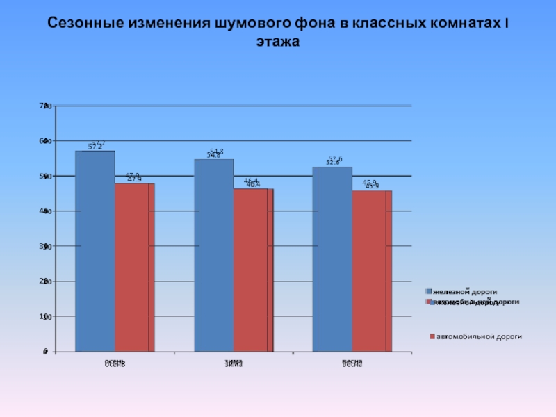 Слайд 16Сезонные изменения шумового фона в классных комнатах I этажа