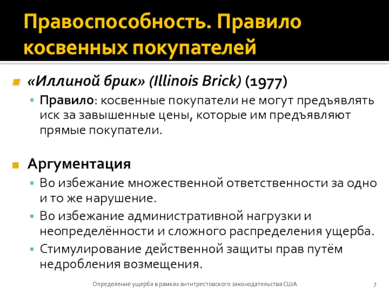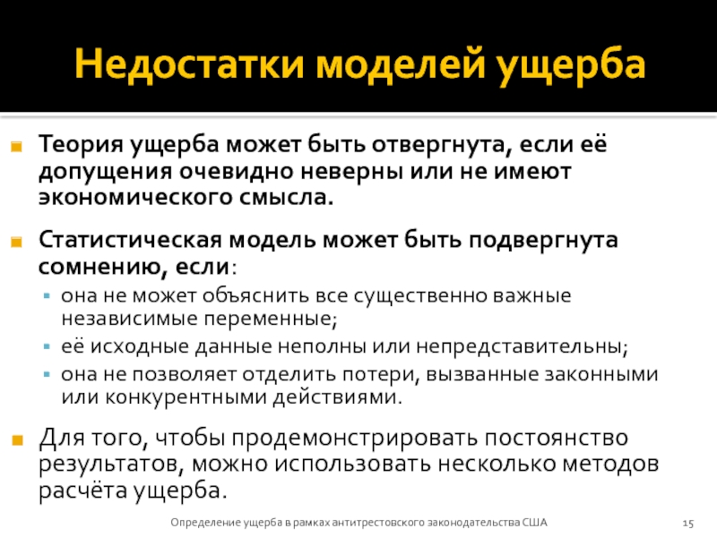 Определение ущерба в рамках антитрестовского законодательства США