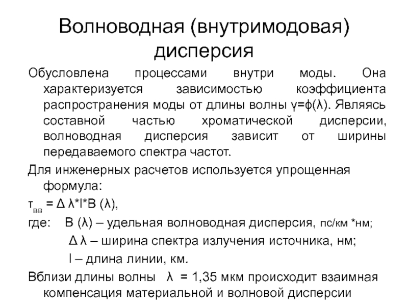 Слайд 22Волноводная (внутримодовая) дисперсия