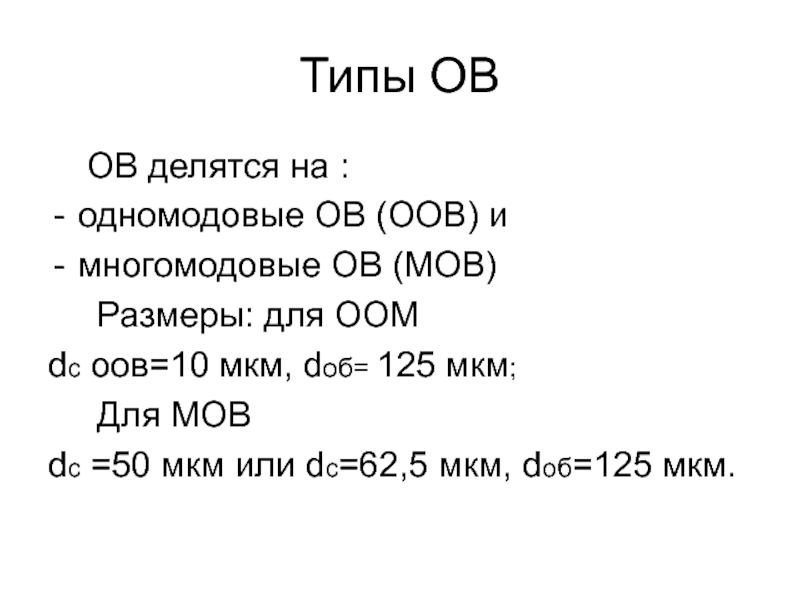 Слайд 5Типы волн, распространяющихся в ОВ.