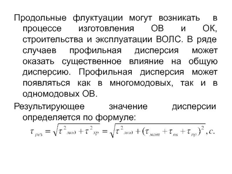 Слайд 26Продольные флуктуации могут возникать в процессе изготовления ОВ и ОК, строительства