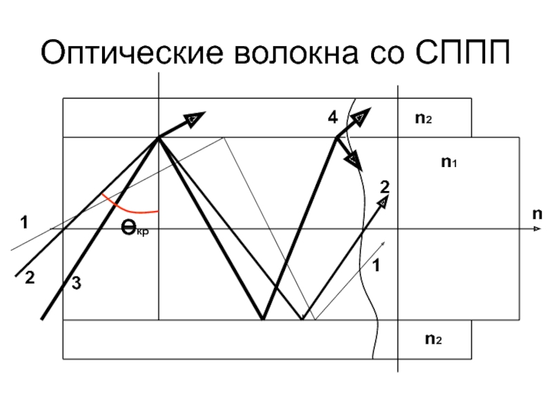 Слайд 8ОВ со ступенчатым и градиентным профилями показателя преломления (ППП)