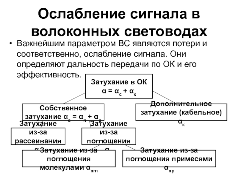 ослабление сигнала. Они определяют дальность передачи по ОК и его эффективность.