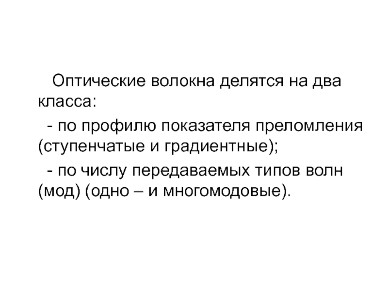 - по профилю показателя преломления (ступенчатые и градиентные);