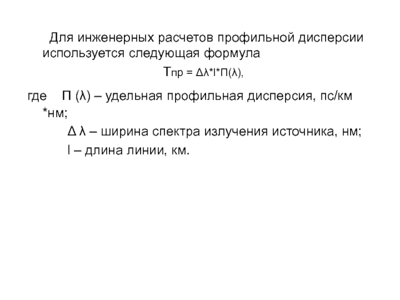 Слайд 25 Для инженерных расчетов профильной дисперсии используется следующая формула