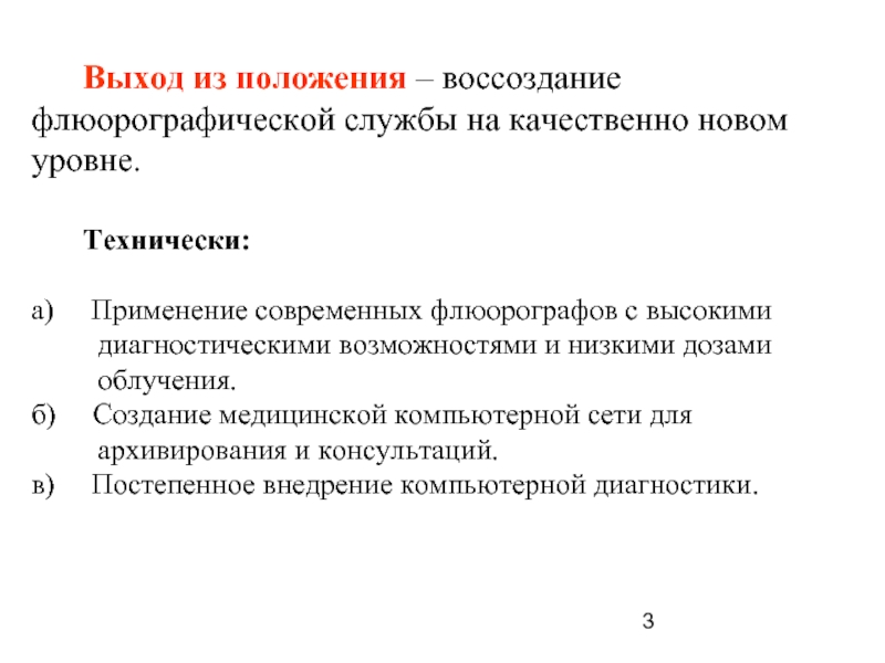 Слайд 3 Выход из положения – воссоздание флюорографической службы на