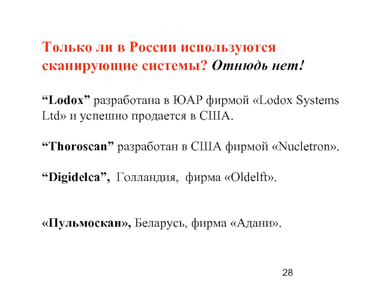 Слайд 28Только ли в России используются сканирующие системы? Отнюдь нет!