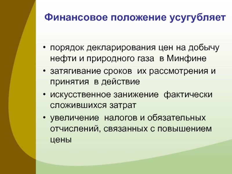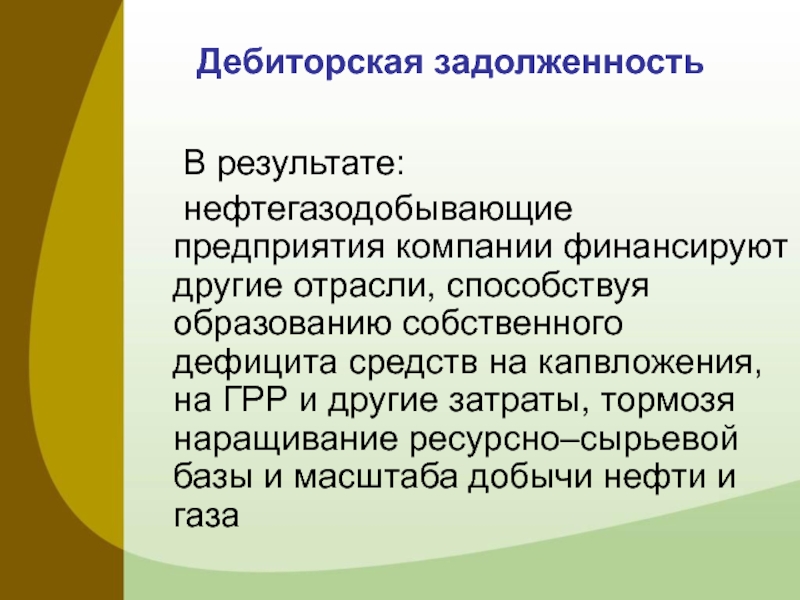 собственного дефицита средств на капвложения, на ГРР и другие затраты, тормозя наращивание ресурсно–сырьевой базы и масштаба добычи нефти и газа