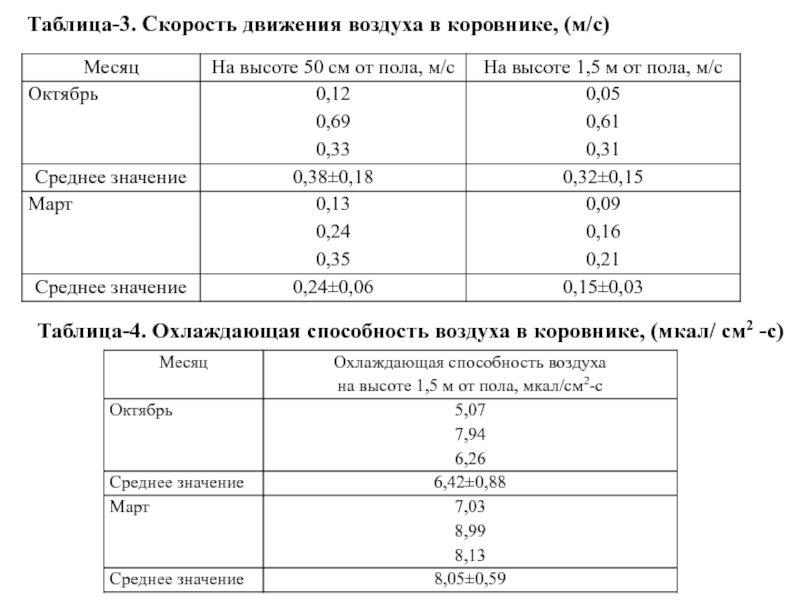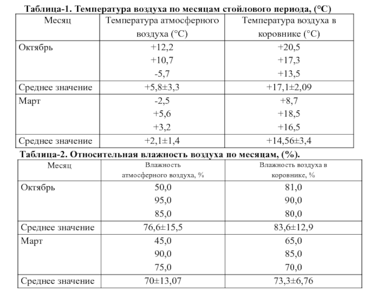 Таблица-6. Общая микробная обсемененность воздуха в коровнике, (КОЕ/м3)