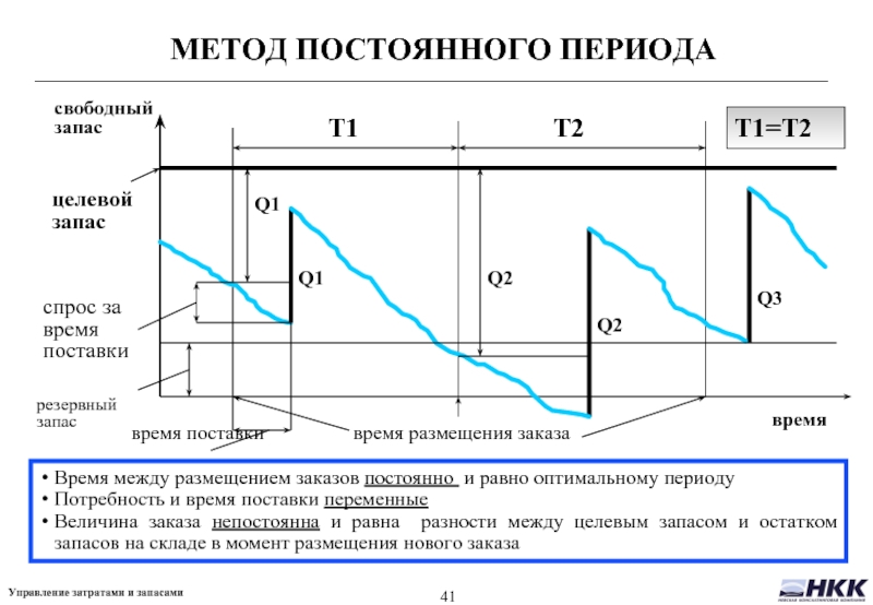 Целевой запас должен обеспечивать такой уровень запасов, чтобы удовлетворить потребность до следующего поступления товара на склад с учетом переменности потребности и времени поставки.