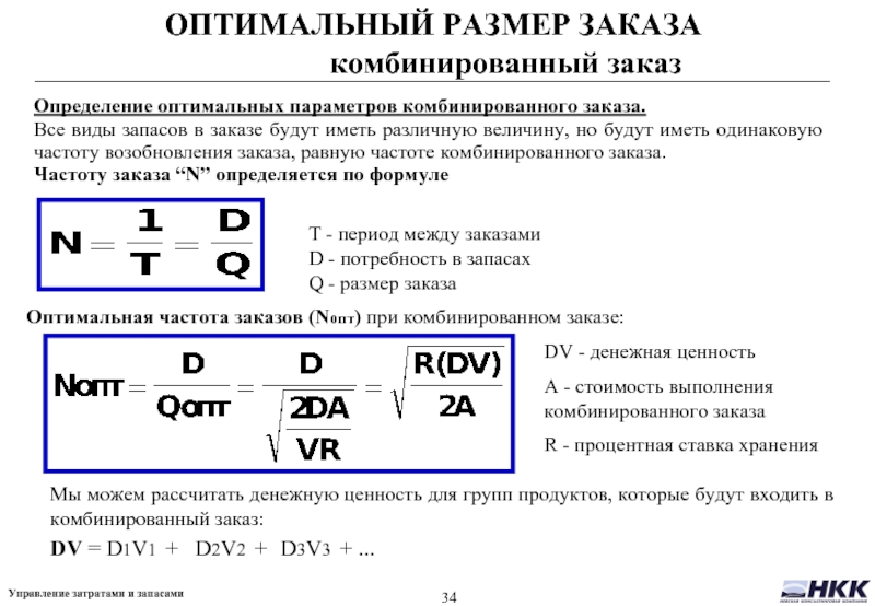 Оптимальная частота заказов (Nопт) при комбинированном заказе: