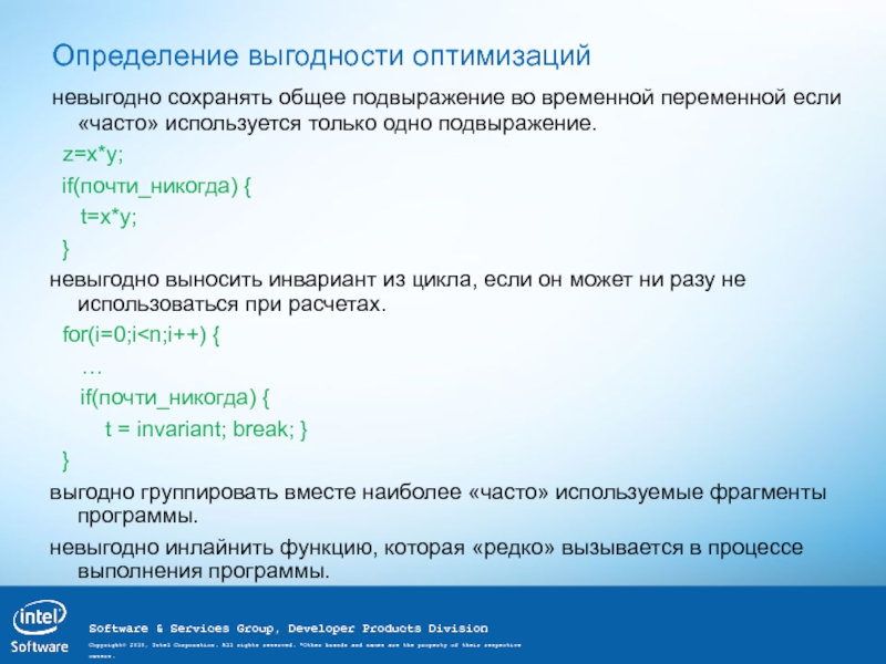 невыгодно выносить инвариант из цикла, если он может ни разу не использоваться при расчетах.