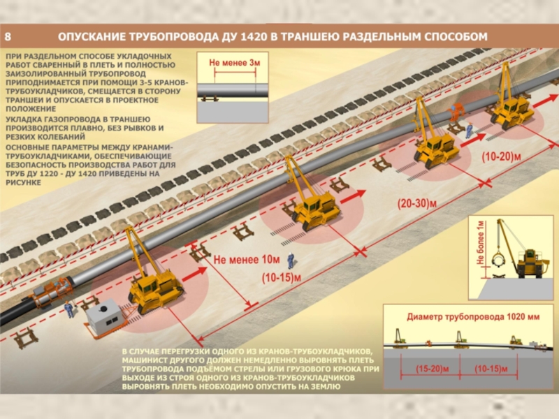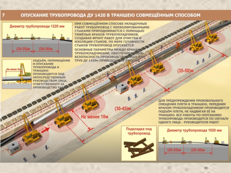 Опускание изолированного магистрального газопровода в траншею кранами-трубоукладчиками презентация