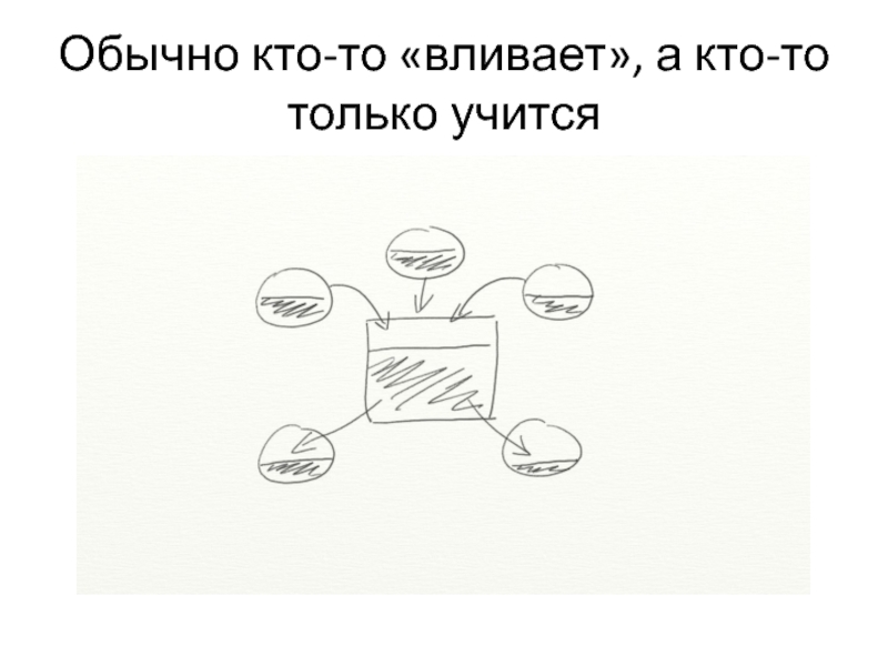 Слайд 5Обычно кто-то «вливает», а кто-то только учится