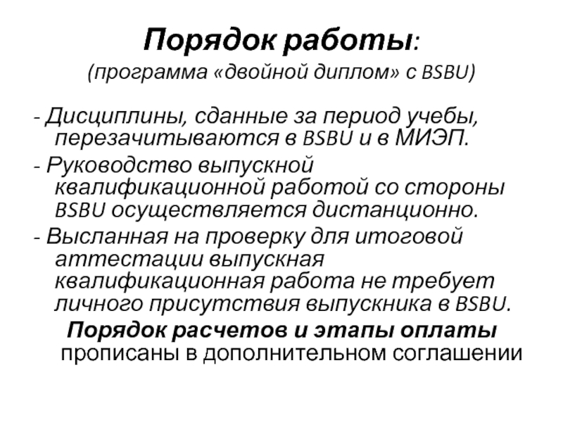Выпускная квалификационная работа отсылается в BSBU в электронном виде.