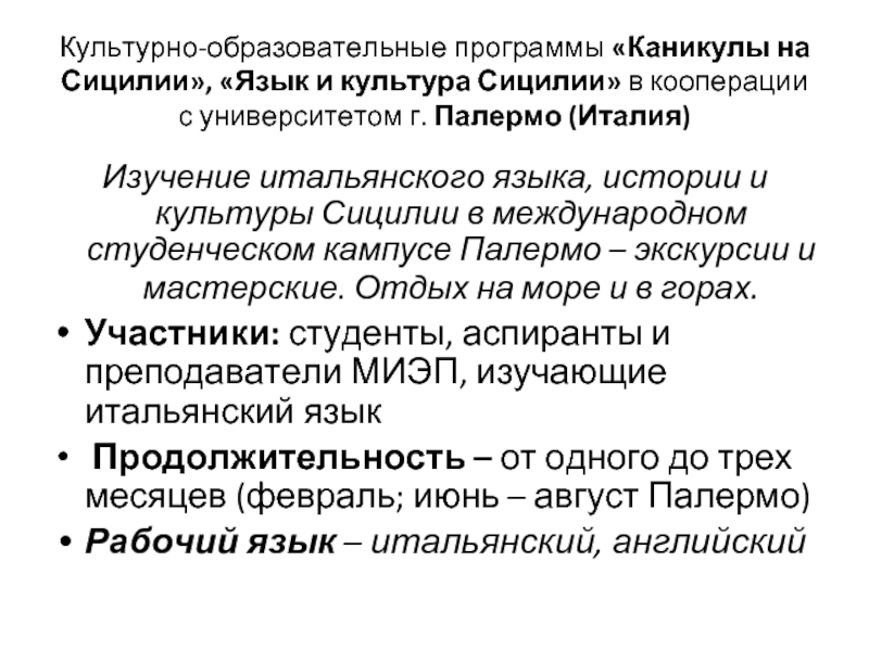 Семинары для преподавателей – Сицилия. Преподавание итальянского языка носителями языка в НОУ МИЭП - Россия