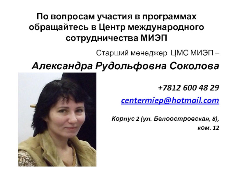 Если не удалось найти и скачать презентацию, Вы можете заказать его на нашем сайте. Мы постараемся найти нужный Вам материал и отправим по электронной почте. Не стесняйтесь обращаться к нам, если у вас возникли вопросы или пожелания: