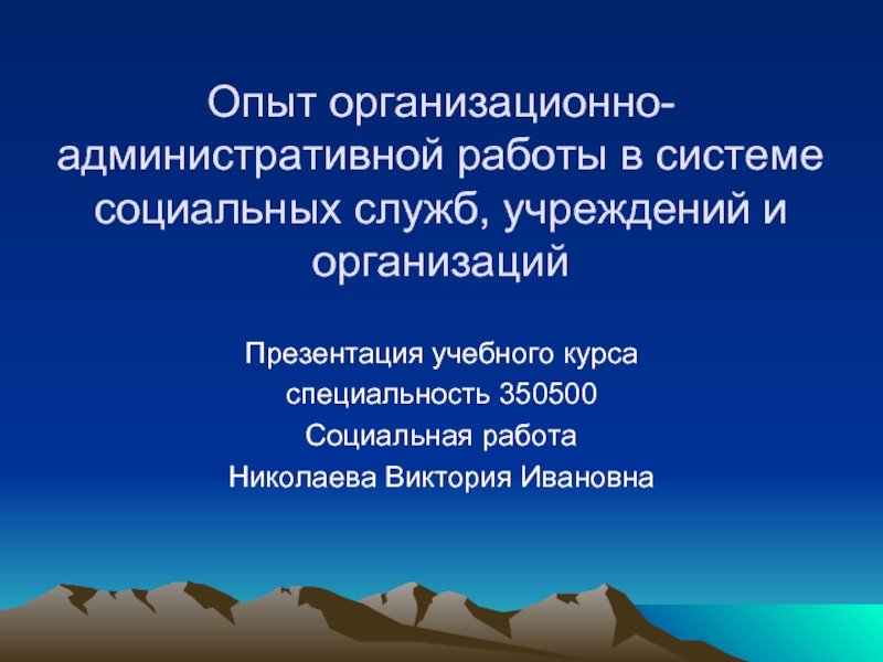 Слайд 1Опыт организационно-административной работы в системе социальных служб, учреждений и организаций