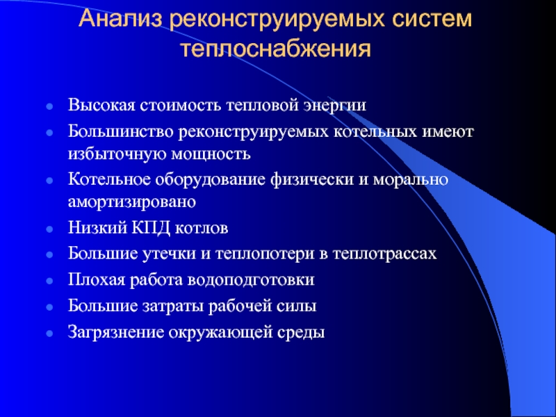 Слайд 4Анализ реконструируемых систем теплоснабжения
