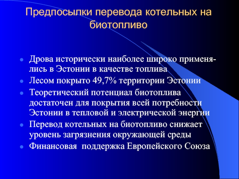 Слайд 2Предпосылки перевода котельных на биотопливо