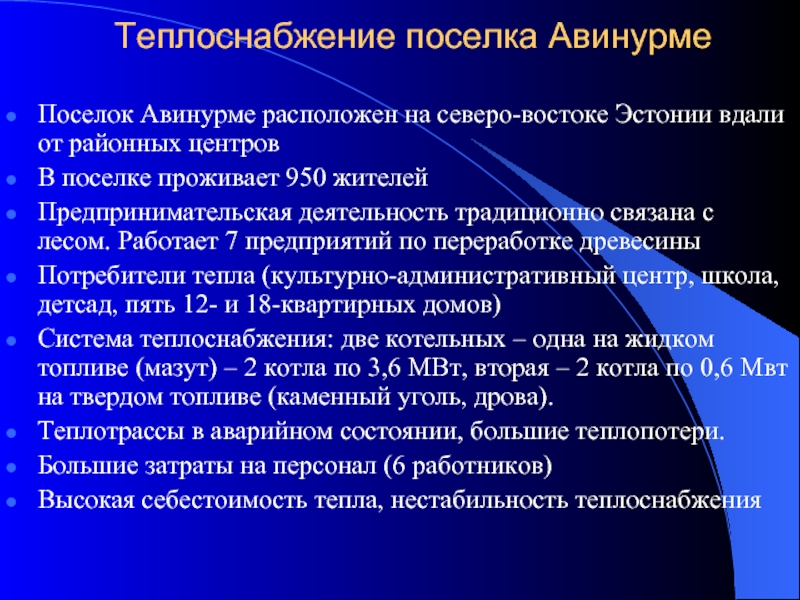 Теплоснабжение поселка Авинурме