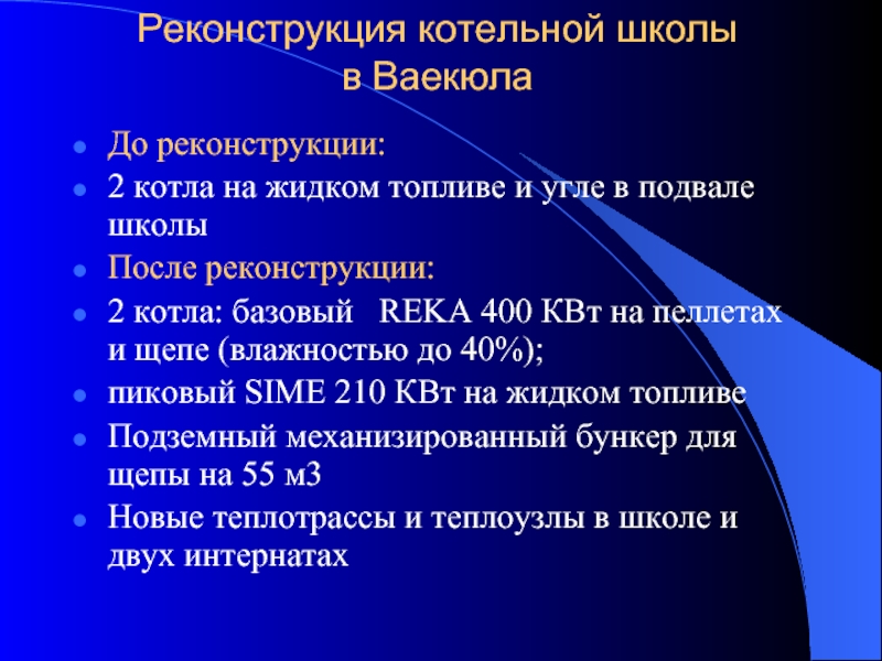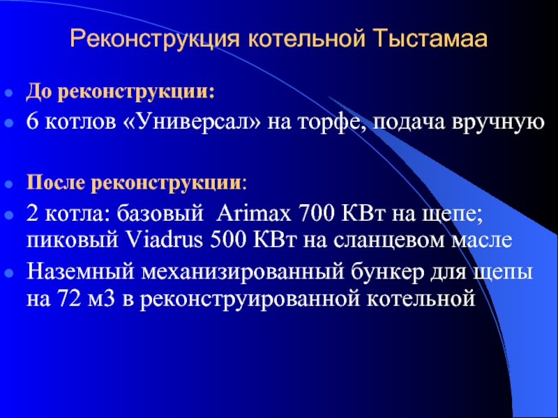 Слайд 25Реконструкция котельной Тыстамаа