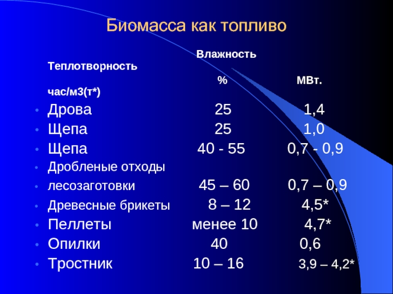 Слайд 6Биомасса как топливо