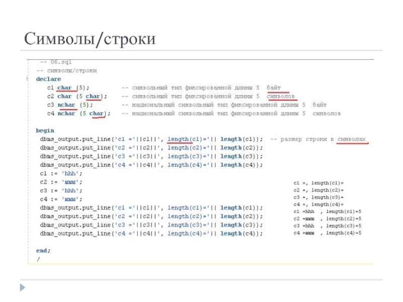 Слайд 23Спецсимволы и зарезервированные слова PL/SQL