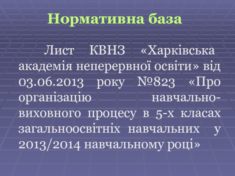 року №823 «Про організацію навчально-виховного процесу в 5-х класах загальноосвітніх навчальних у 2013/2014 навчальному році»