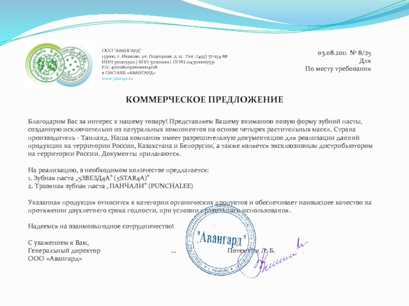 КОММЕРЧЕСКОЕ ПРЕДЛОЖЕНИЕ