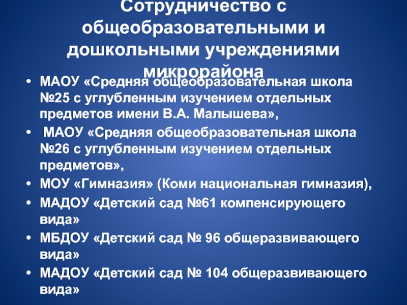 государственные и муниципальные учреждения дошкольного, общего и дополнительного образования: