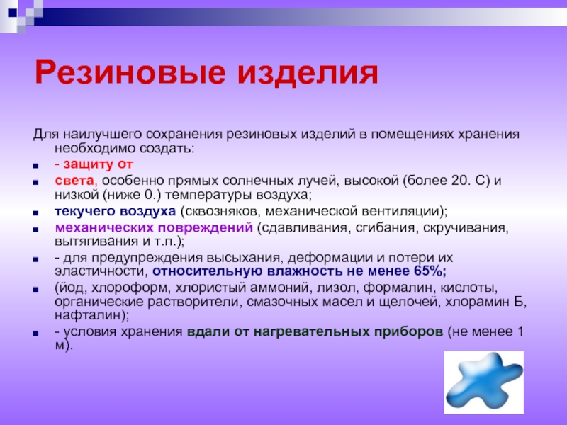 Для наилучшего сохранения резиновых изделий в помещениях хранения необходимо создать: