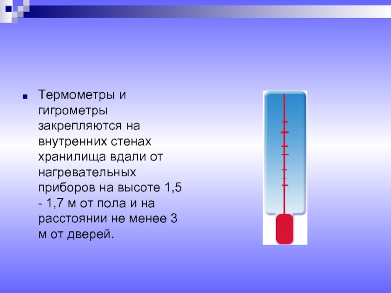 Термометры и гигрометры закрепляются на внутренних стенах хранилища вдали от нагревательных