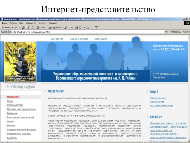 Начальника управления образовательной политики и мониторинга ФГОУ ВПО «Воронежский государственный аграрный университет имени К.Д. Глинки»