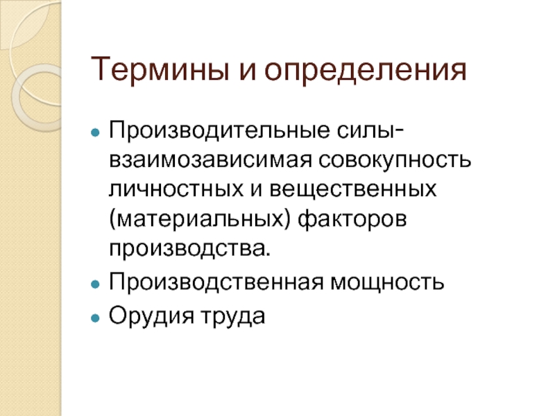 Производительные силы-взаимозависимая совокупность личностных и вещественных (материальных) факторов производства.