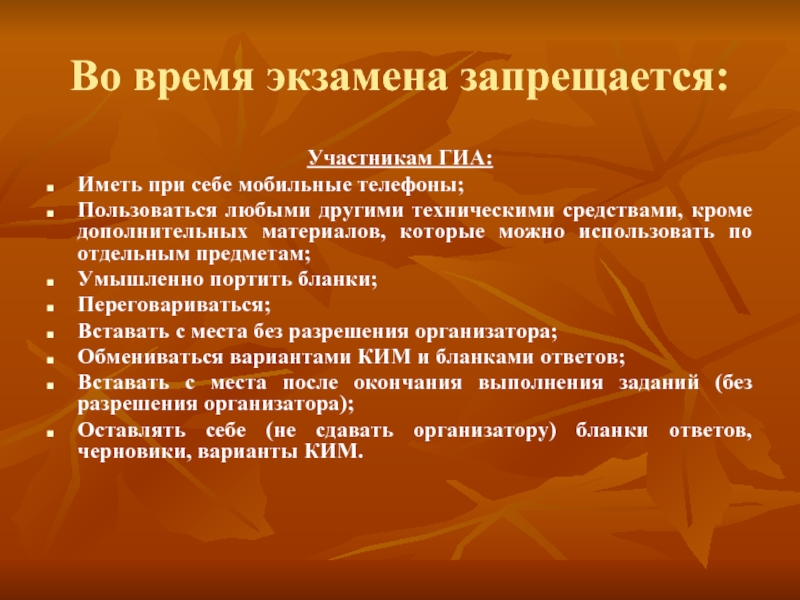 техническими средствами, кроме дополнительных материалов, которые можно использовать по отдельным предметам;