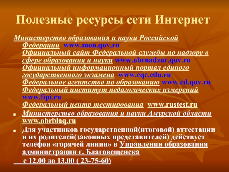 Для участников государственной(итоговой) аттестации и их родителей(законных представителей) действует телефон «горячей линии» в Управлении образования администрации г. Благовещенска