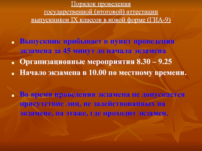 Выпускник прибывает в пункт проведения экзамена за 45 минут до начала экзамена