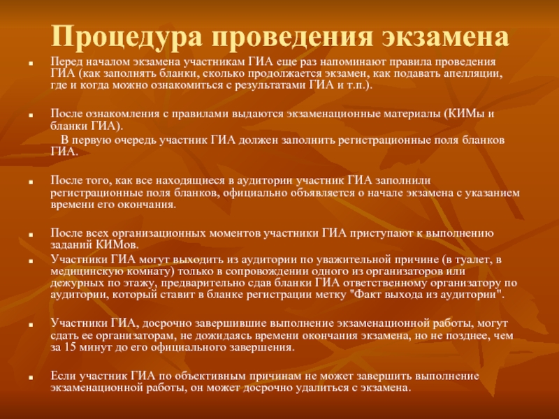 проведения ГИА (как заполнять бланки, сколько продолжается экзамен, как подавать апелляции, где и когда можно ознакомиться с результатами ГИА и т.п.).
