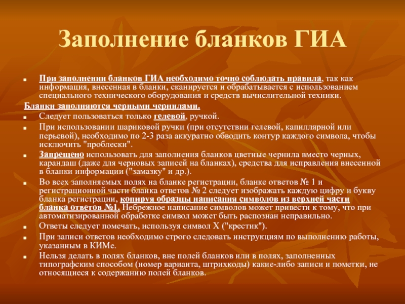 При заполнении бланков ГИА необходимо точно соблюдать правила, так