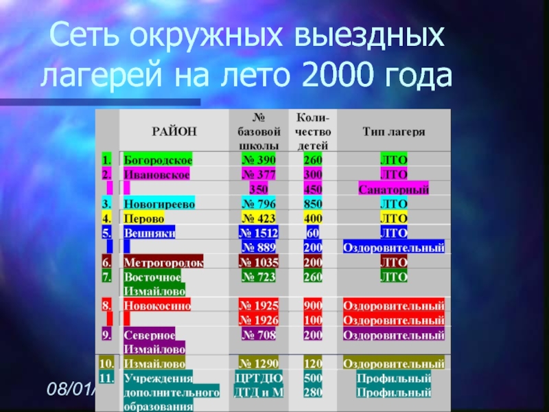 Базы ведомственных учреждений и предприятий (1550 детей)