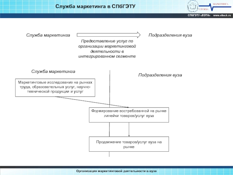 Создание целостной системы, обеспечивающей рыночную ориентацию вуза и каждого его подразделения