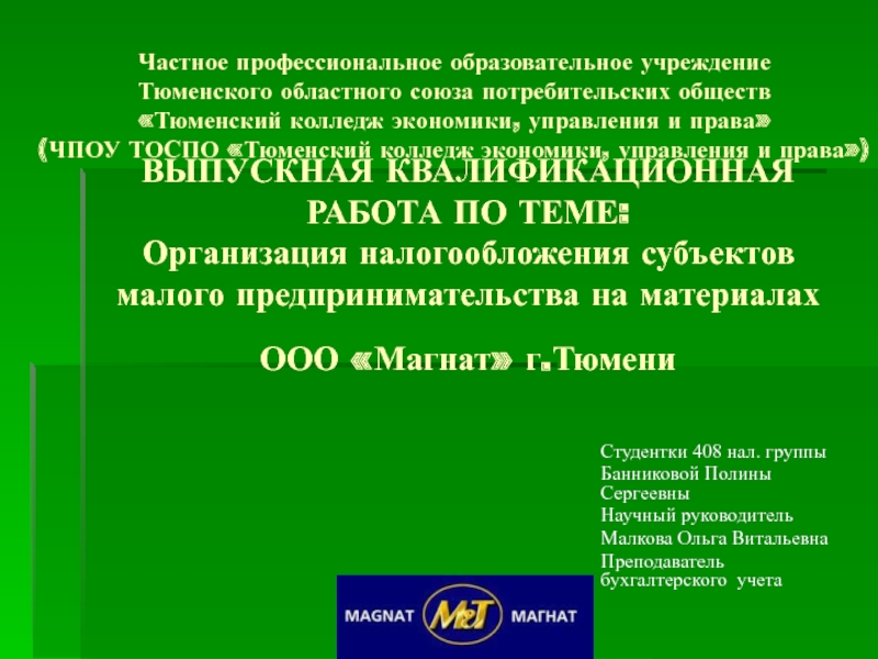 (ЧПОУ ТОСПО «Тюменский колледж экономики, управления и права»)